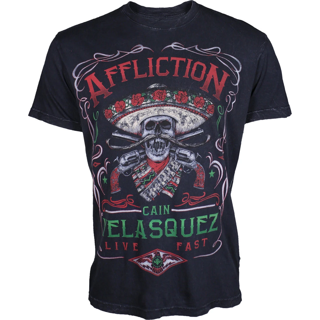 Affliction Cain Velasquez Caudillo Shirt is the official UFC 188 walkout shirt of UFC heavyweight, Cain Velasquez! Each shirt is hand-signed on the tag by Cain Velasquez himself!