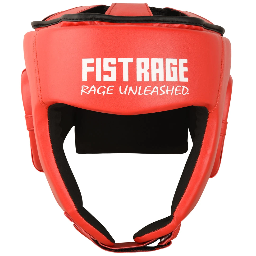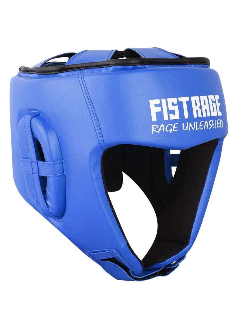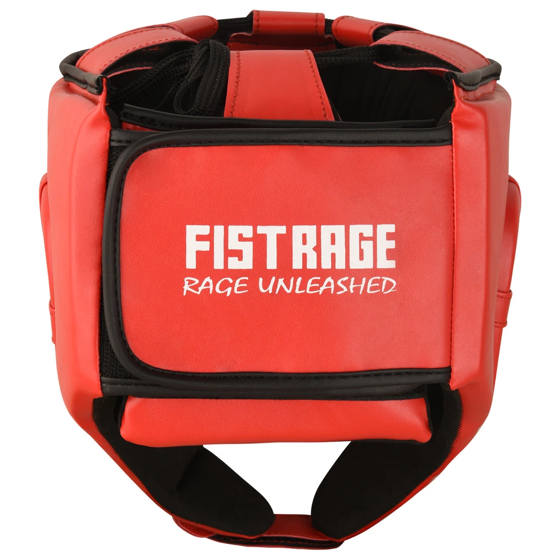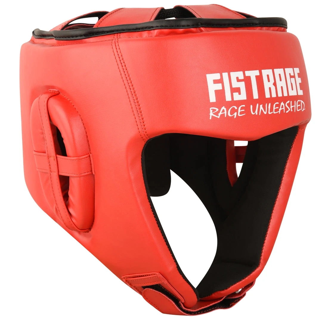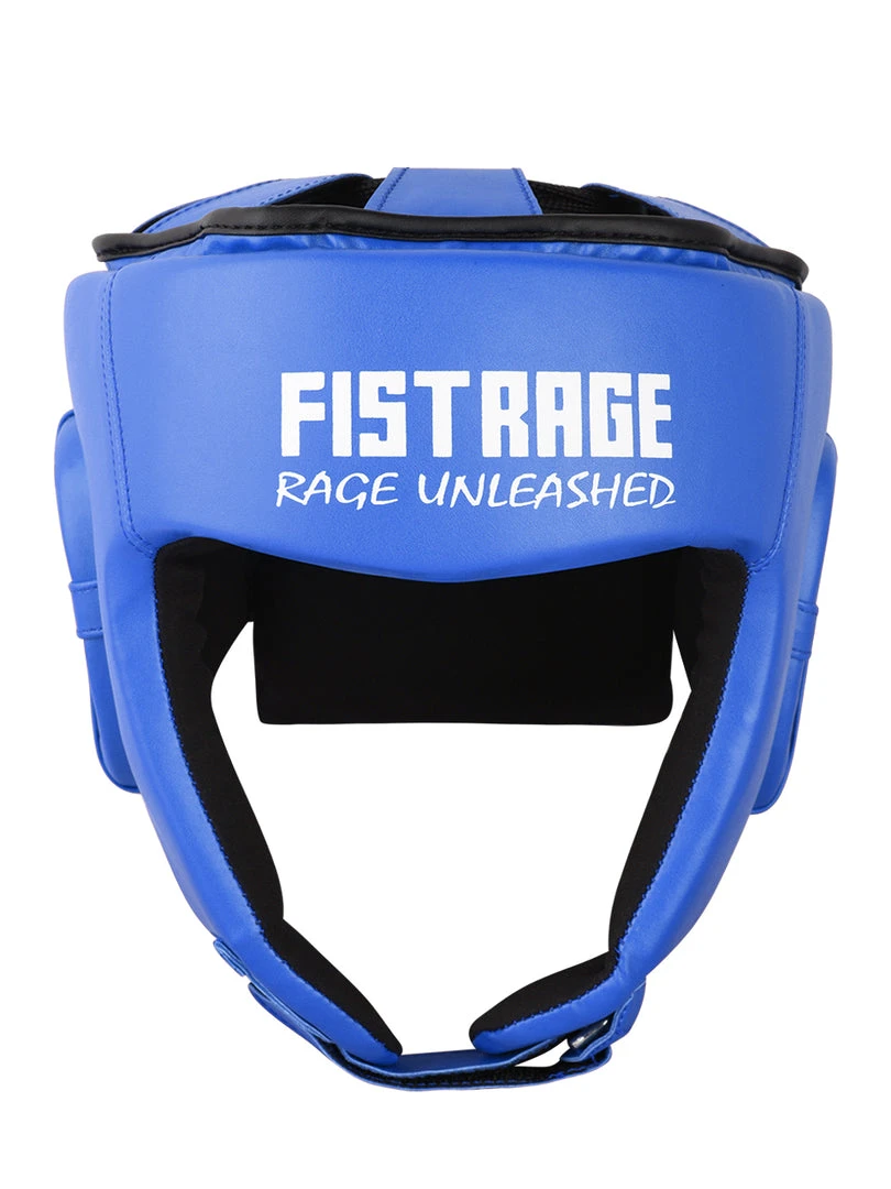 FISTRAGE Boxing Headgear made with Premium quality leather with anti-slip leather lining. Calibrated impact diffusion sheet makes boxing headgear durable its multiple layers of foam with gel in-lining serves as added shock absorber. Shredded pulp from EVA padding, Max shock sheet and Zerox fabric with stuffed hosiery waste makes for perfect shock absorption of this headgear. It is a very light weight head guard with air cushion foam padding inside to keep your head safe during fights. FISTRAGE boxing headgear comes with strong Velcro strap back closing made up of leather.