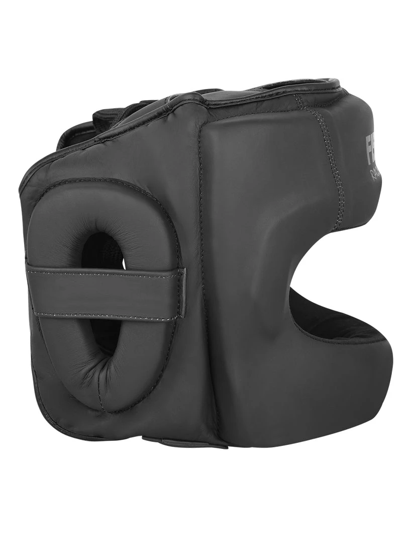 - FISTRAGE Head Guard Made of High Quality Leather inside Amara material hand crafted padding for cheeks and ears protection leather strap Velcro closing system on back side of head.