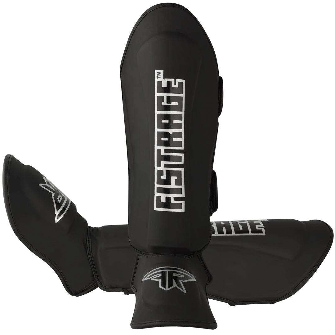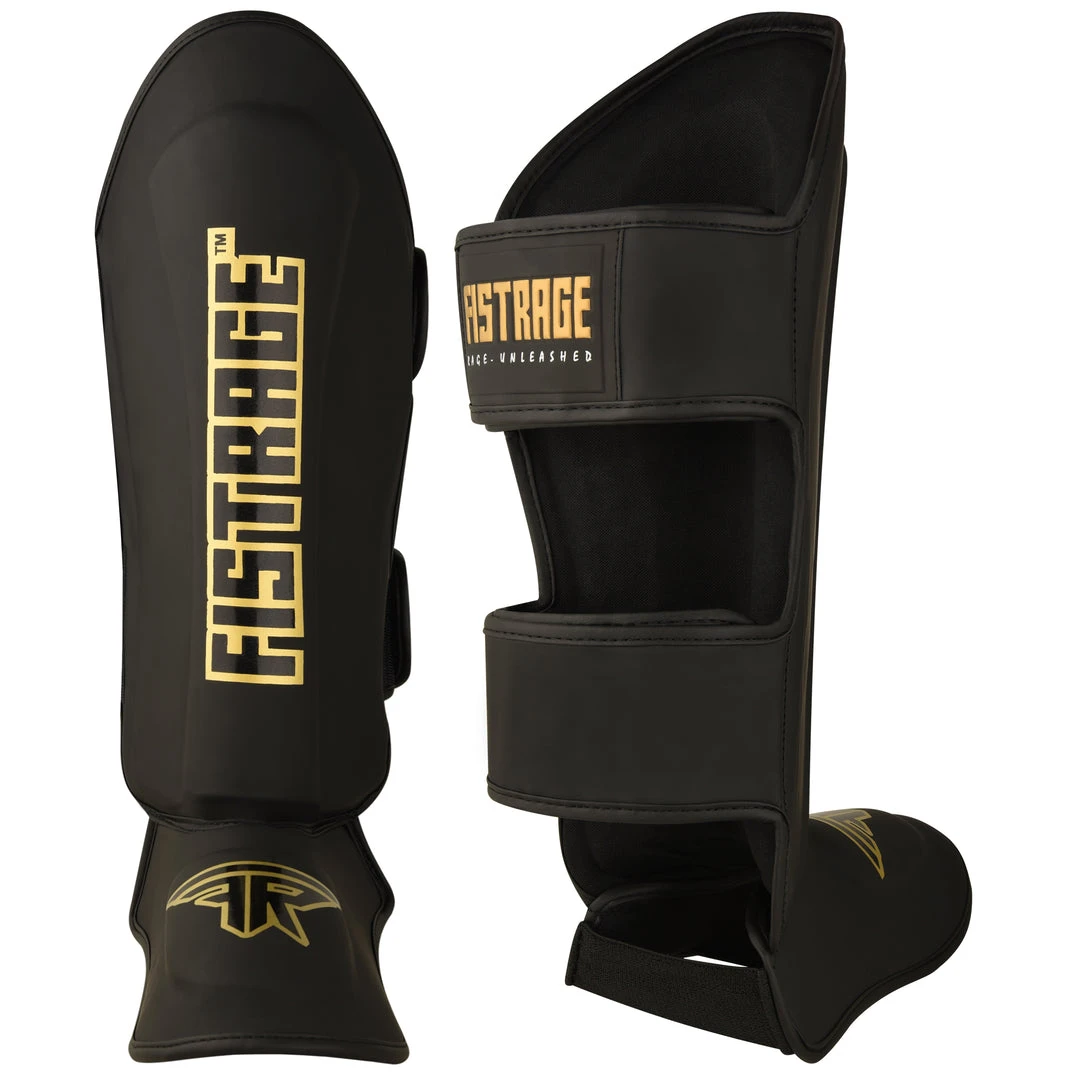- The FISTRAGE Professional Shin Guard was created to combine the highest possible standards of comfort with the required Professional safety standards. Muay thai Boxing, MMA Professional Leather Grappling Shin-Instep Guards have featured articulated foam panels over the ankle and instep that provide additional comfort and enhanced performance structures with 100%. This combination of high tech and traditional materials gives you modern day comfort and old fashioned durability and strength.