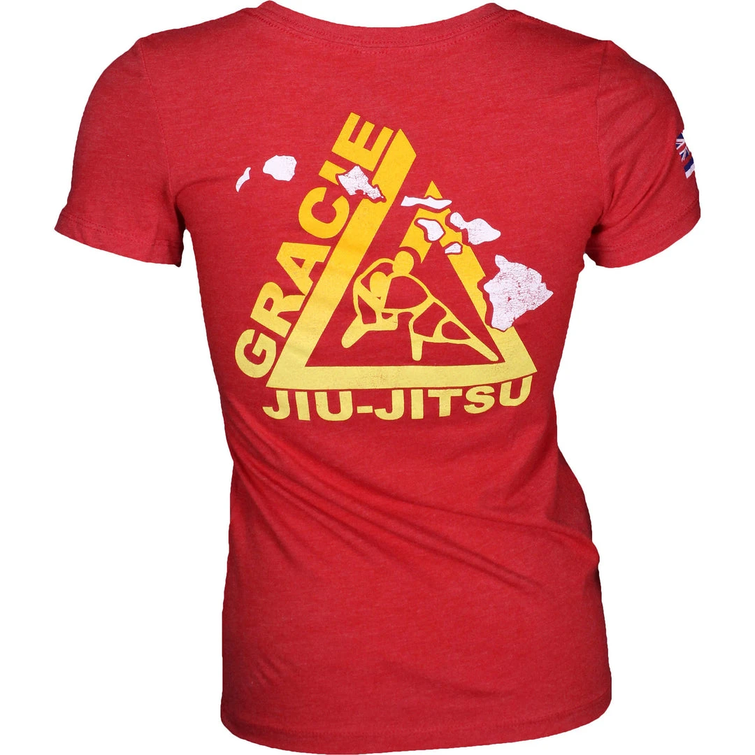 The Gracie Jiu-Jitsu Arollha Womens Shirt is a Hawaiian inspired Jiu Jitsu tee! Aloha is one of Hawaii’s most famous words, so we merged the Hawaiian and jiu-jitsu cultures together by merging “Roll” with “Aloha,” to create “Arollha!”